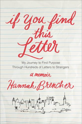 12 of 14 people found the following review helpful. Young Woman Finds Self Writing Love Letters By Conny Title: If You Find This LetterAuthor: Hannah BrencherPublisher: Howard BooksISBN: 978-1-4767-7360-5“It took loneliness to make the first couple of love letters come out of me, to realize something so much bigger than what I thought was just my own loneliness: we’ve never really been alone. Maybe lonely, but never alone,” Hannah Brencher writes in her memoir, "If You Find This Letter: My Journey to Find Purpose Through Hundreds of Letters to Strangers."This two hundred and seventy-two page hardbound targets those interested in reading an autobiography of an unpretentious woman who reached out to others to find her true self. Beginning with a note from the author, the book ends with a call to promote or join her website outreach (www.moreloveletters.com). With no profanity, the topics of suicide, death, and loneliness may not be appropriate for immature readers. The focus of the book is for twenty-something-year-olds but may be appreciated by those seasoned with life’s hard knocks and relatable past experiences.Writer, national speaker, and founder of The World Needs More Love Letters, author Brencher graduated from Assumption College and is named as one of the White House’s “Women Working to Do Good.”In this account written in first person, twenty-six-year-old author Brencher is dedicated to showing others how much she cares by having written over four hundred personal love letters of encouragement, mostly to complete strangers.After graduating college, she decided to do a year of volunteer work. Living in New York, loneliness and depression grasped hold of her, making her desperate to belong; she felt inadequate and awkward, wanting more out of life while having an ongoing battle with God. One day on a train ride, “the girl just trying to find her way” wrote a love letter to an unknown commuter, yet never had the opportunity to deliver it.Her addiction to letter-writing to the heartbreak and lonely people accelerated when she realized life was not all about her, but about God and His grace, while losing the fixation to control and desire to be important. As letters were left wherever she traveled, her mailbox and email exploded with requests from six continents. With the ultimate task of writing to the Almighty, Brencher found her path to happiness by loving others through handwritten notes.With the book being the story of her letter-writing journey with quirky, emotional, and sometimes self-absorbing rants and raves, it challenges not only millennialists to concentrate on helping others, emotionally-weathered individuals will wonder how they can aid in her cause.The Bible (KJV) states in Romans 8:39, “Nor height, nor depth, nor any other creature, shall be able to separate us from the love of God, which is in Christ Jesus our Lord.” There is everlasting hope that no matter where we are in life, we are always loved by God.Rating: 4.5 of 5 starsThanks to Howard Books for furnishing this complimentary book in exchange for a review based on the reader’s honest opinions.